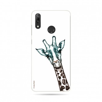 Coque pour Huawei Y7 2019 souple Tête de Girafe sur fond blanc