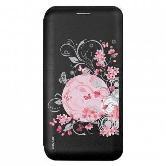 Etui pour Samsung Galaxy A20e Noir motif Fleurs et Papillons