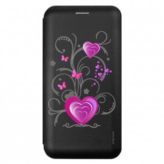 Etui pour Samsung Galaxy A20e Noir motif Coeur et Papillon